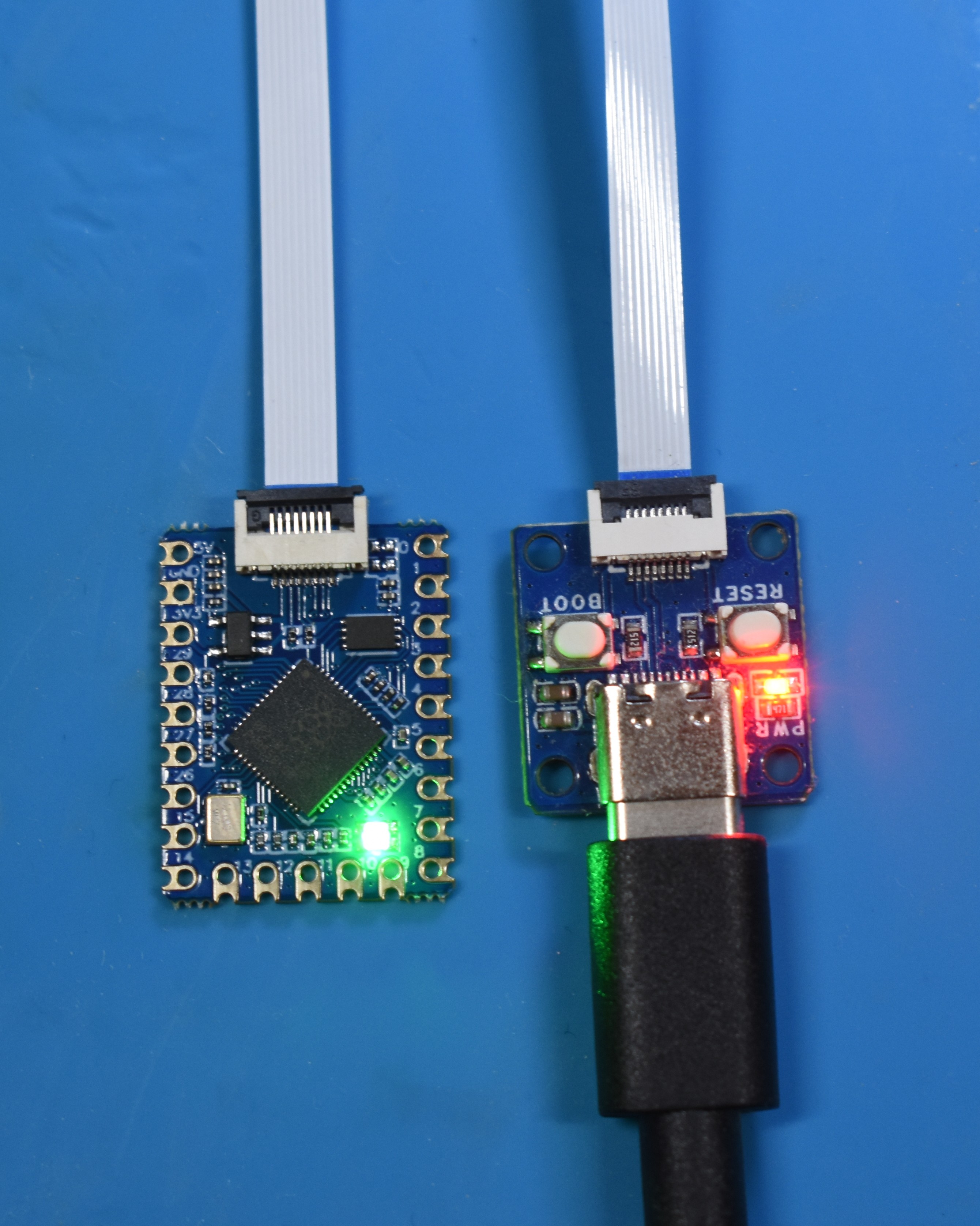 - Note: The modchip will flash blue as soon as it's connected to a power source if the modchip was flashed with spacecraft-nx or hwfly-nx previously. This indicates that it's awaiting USB input.